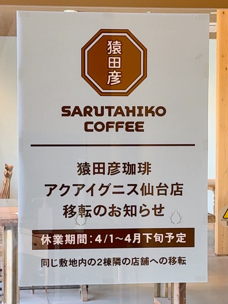 猿田彦珈琲は移転して2棟隣にオープンします。(4月1日から新店舗オープンまで休業)