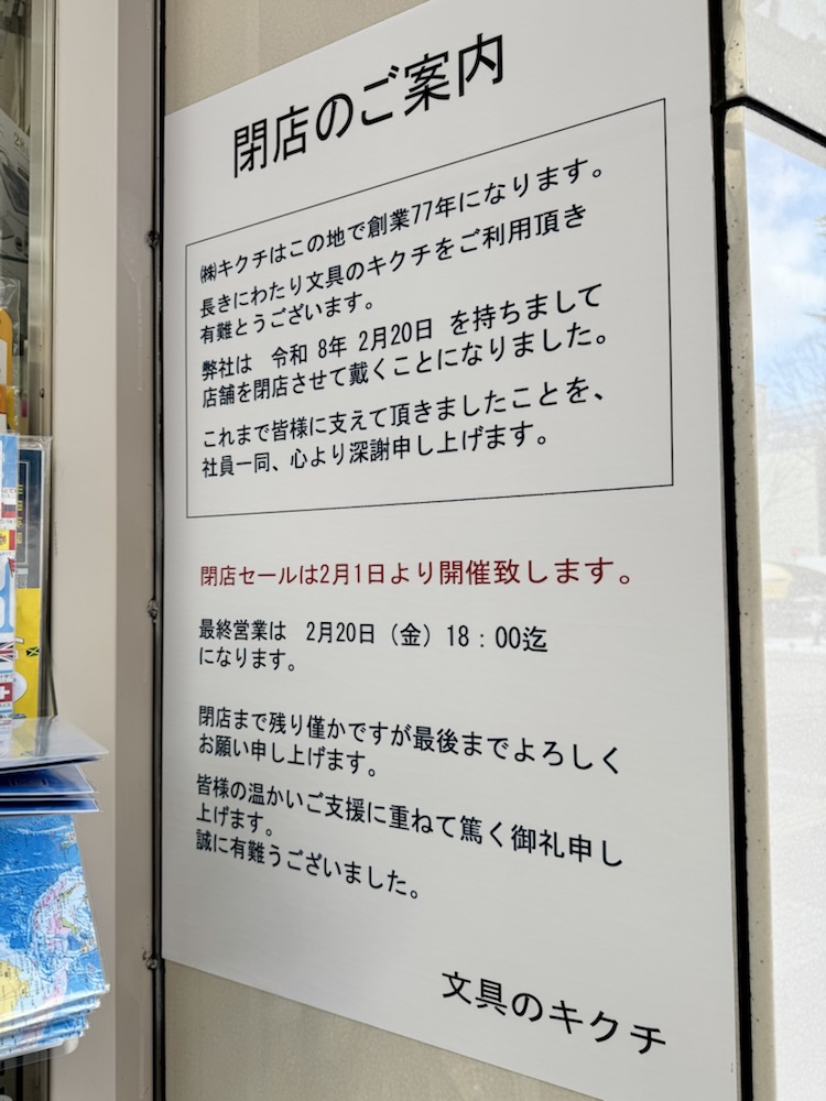 仙台市青葉区一番町の「文具のキクチ 一番町店」が閉店するそうです。