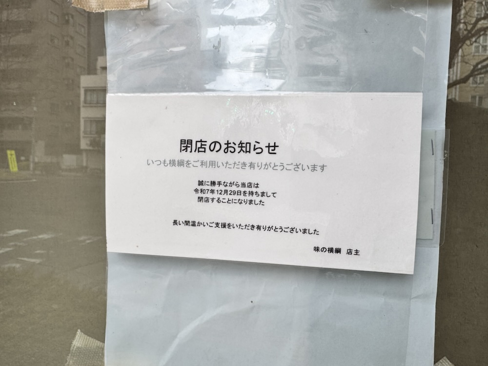 仙台市青葉区北目町の「味の横綱」が閉店していました。
