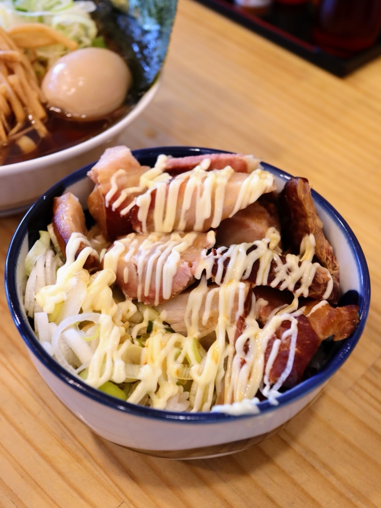おすすめの数量限定「ミニマヨチャーシュー飯 300円」もいただきました。