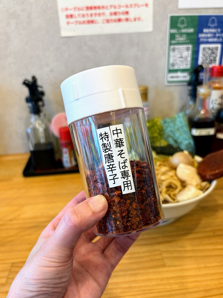 中華そば専用の特製唐辛子を入れるのもおすすめです。