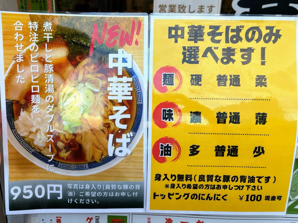 「そば処 河北 泉インター店」に中華そばが新登場
