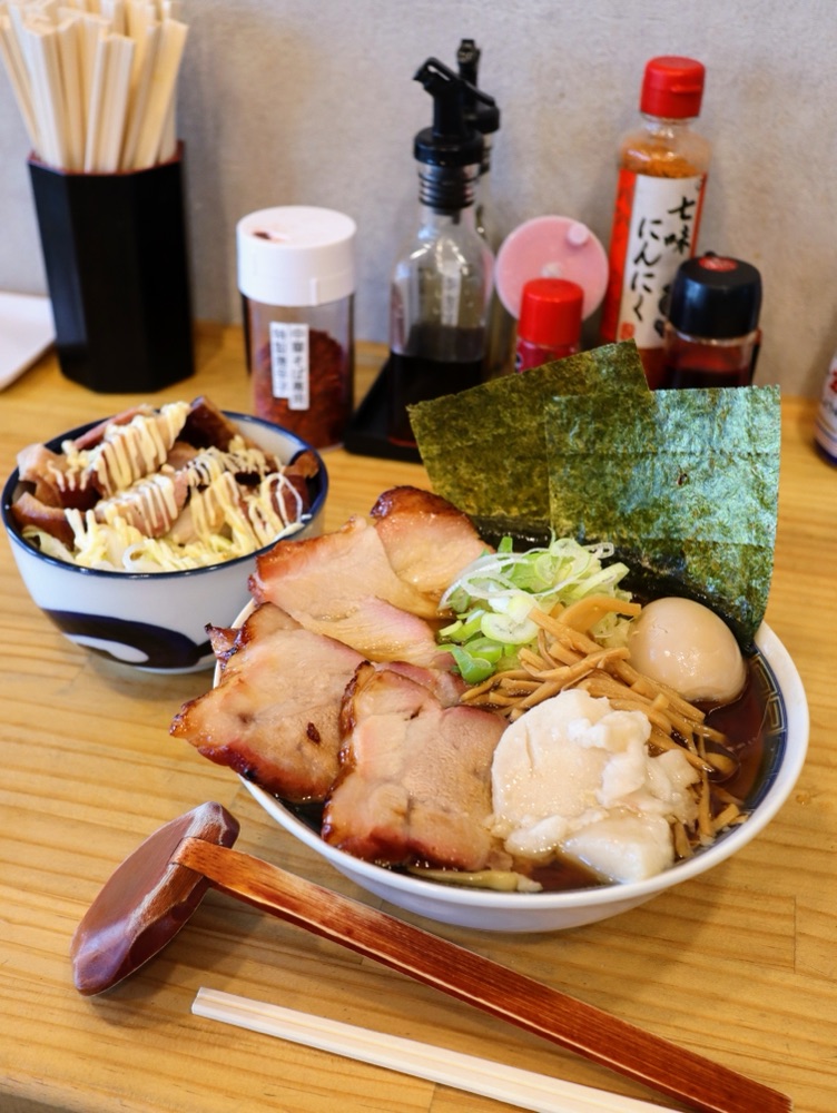 おすすめの数量限定「ミニマヨチャーシュー飯 300円」もいただきました。