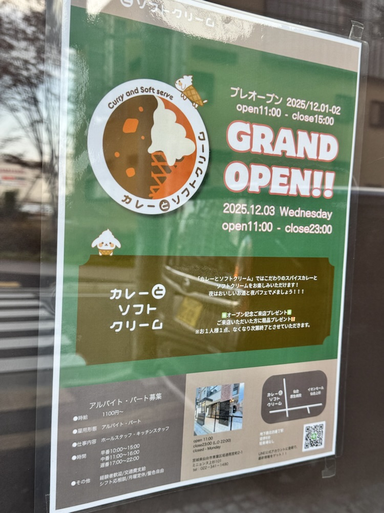 仙台市青葉区堤通雨宮町に「カレーとソフトクリーム」が誕生します。