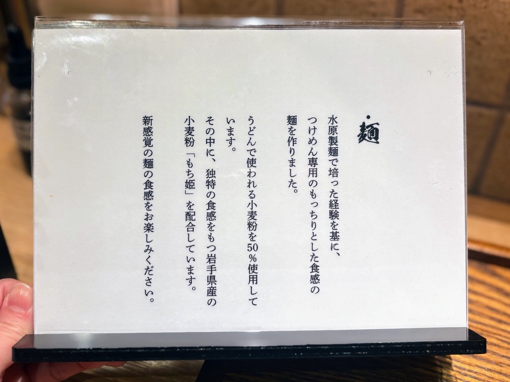 2023年12月に「水原製麺」の姉妹店として誕生した、もちもち食感のつけ麺が人気のお店。