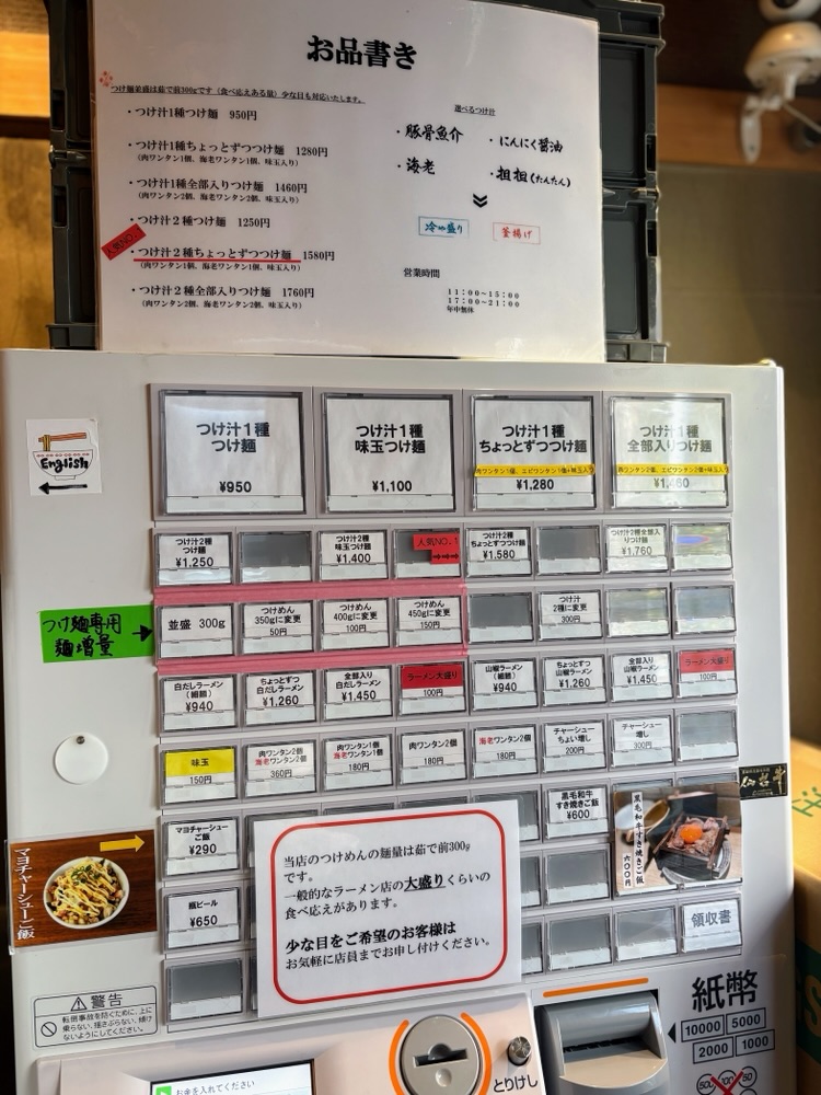 つけめんの麺量は茹で前300gで、一般的なラーメン店の大盛りくらいの食べ応え。少な目を希望すれば対応してくれるそうです。