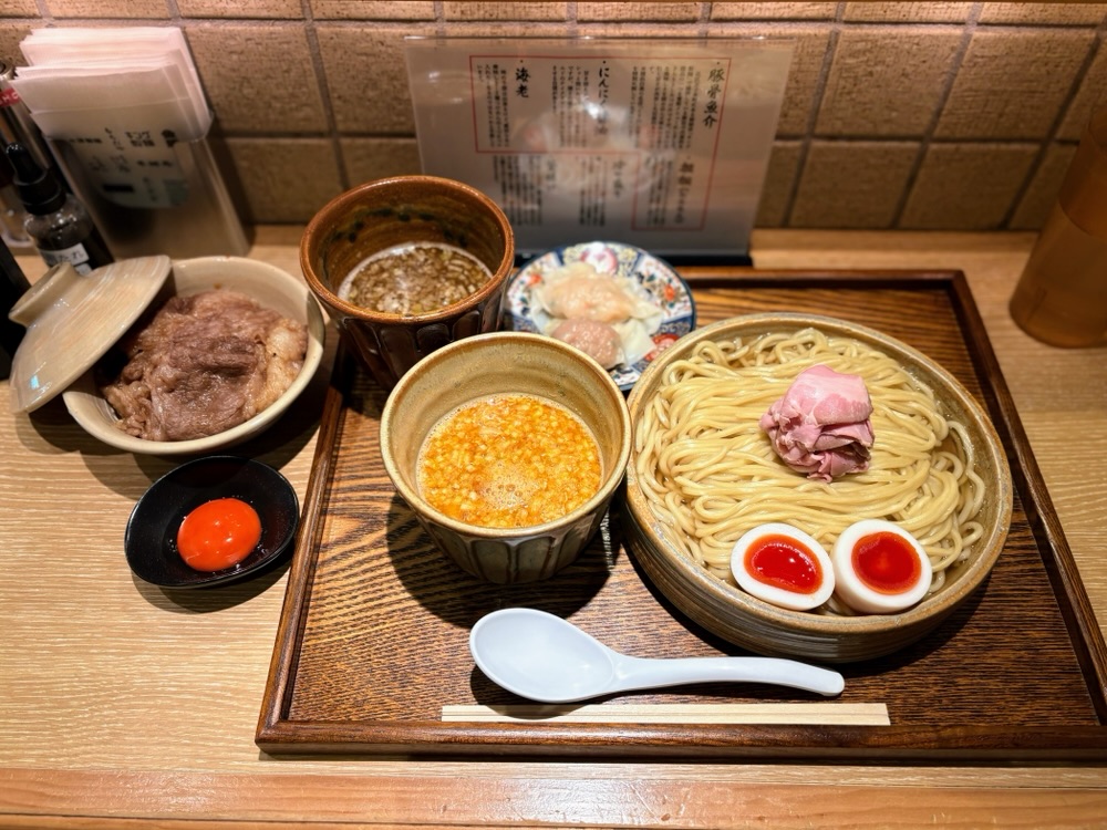 実食!人気No.1「つけ汁2種ちょっとずつつけ麺 1580円」「黒毛和牛すき焼きご飯 600円」