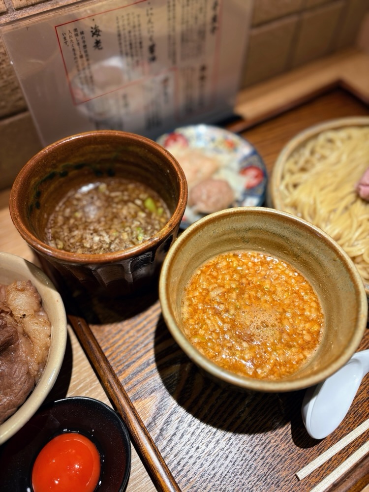つけ汁2種は「豚骨魚介」と「担担」を。