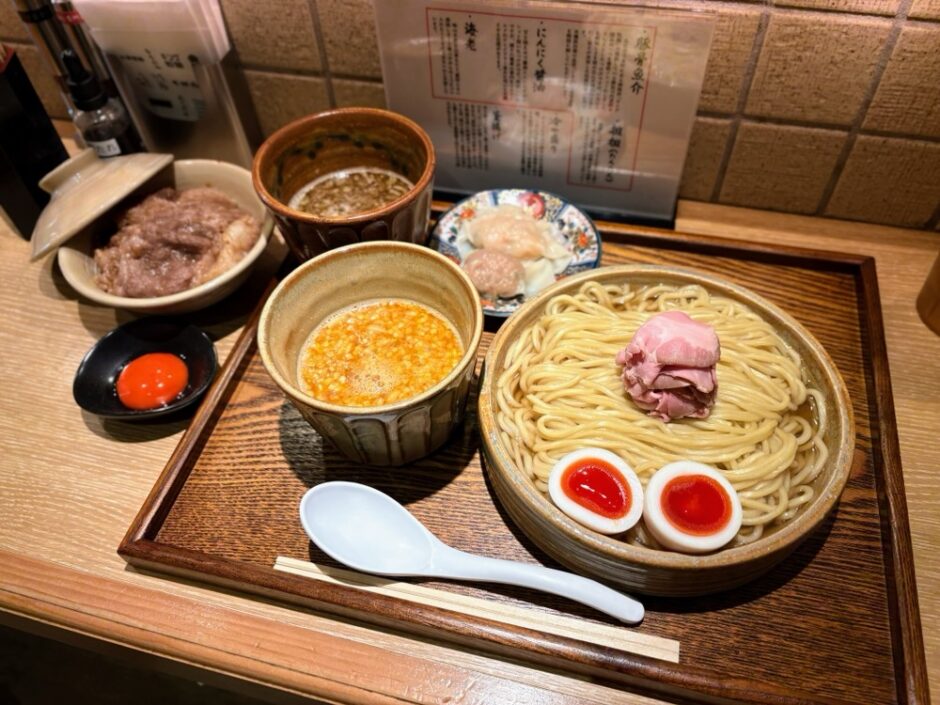実食!人気No.1「つけ汁2種ちょっとずつつけ麺 1580円」「黒毛和牛すき焼きご飯 600円」