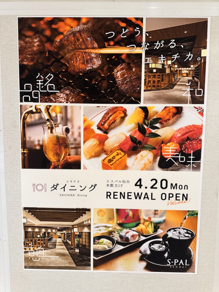エスパル仙台の地下レストラン街は段階的にリニューアル中です。