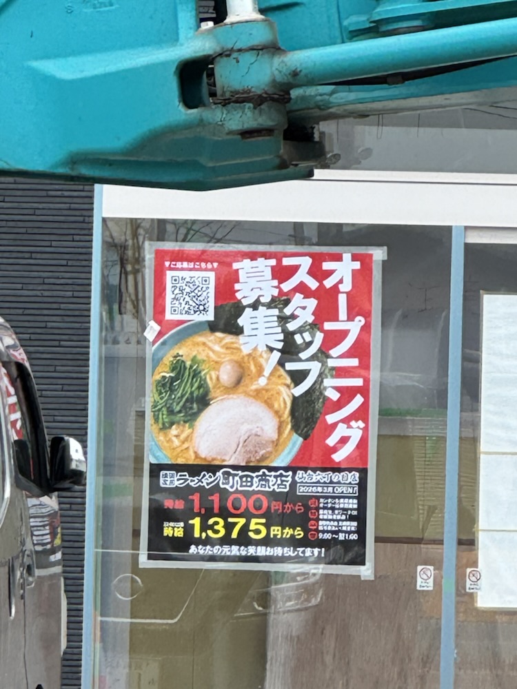 建物が完成しており、オープニングスタッフ募集の掲示がありました。