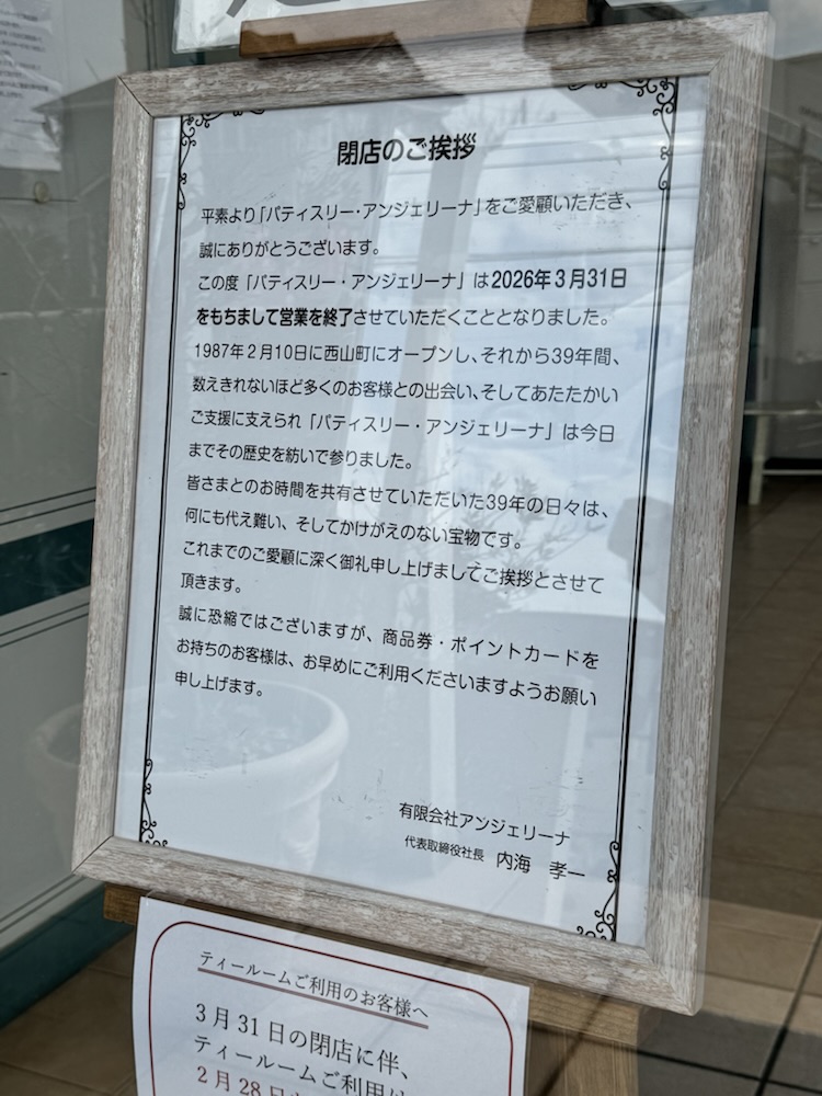 宮城県石巻市の「パティスリー・アンジェリーナ」が閉店するそうです。