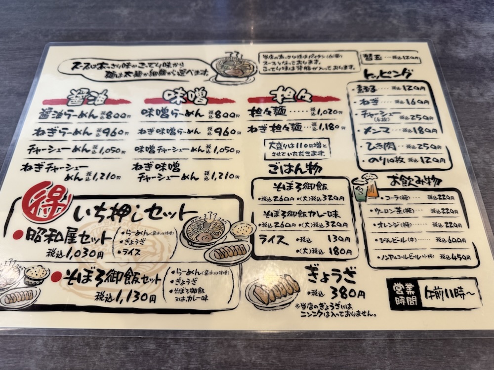 醤油ラーメンや味噌ラーメン、坦々麺などを提供しています。