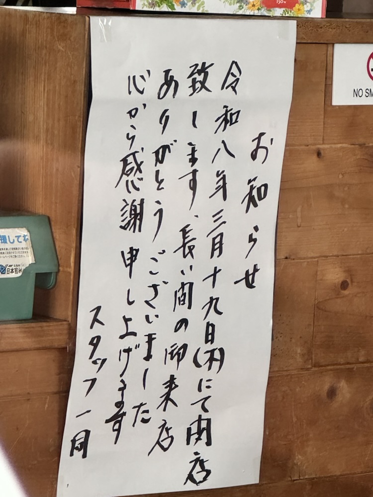 令和8年3月19日(木)にて閉店致します。長い間のご来店ありがとうございました