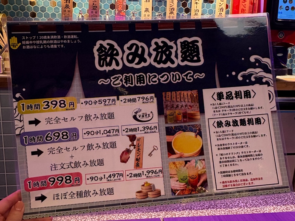 飲み放題は3プラン。各プランそれぞれ1時間・90分・2時間コースが選べます。
