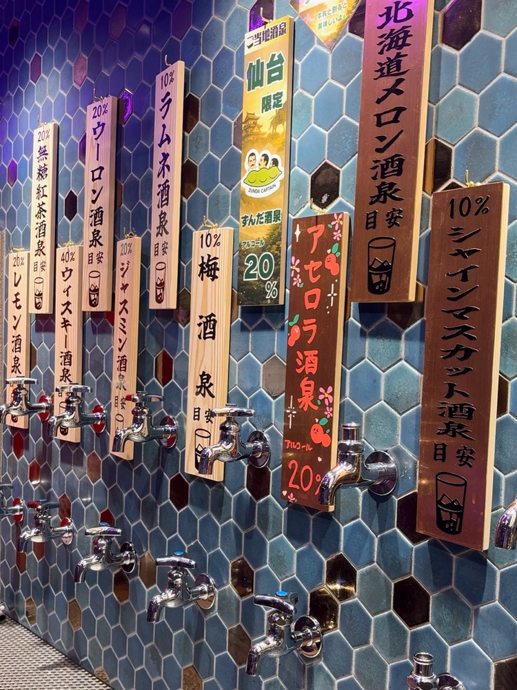 @sendaiminami_tusin 【東北初!2月6日オープン】名古屋発・ひねり蛇口ハイが飲める銭湯エンタメ酒場「大衆酒泉テルマエ」が仙台に誕生 ♦︎蛇口をひねるとお酒が出てくる1時間398円(税込438円)〜のセルフ式飲み放題が名物のお店 ♦︎銭湯をモチーフにした店内は蛇口ハイがずらりと並ぶタイル壁・シャワー・鏡などが設置された浴場フロアと、木目調の床やロッカーが描かれた脱衣所フロアがあり ♦︎蛇口ハイは26種あり、炭酸水やさまざまなソフトドリンクと割ったり蛇口ハイを組み合わせたり100万通り以上のバリエーションが楽しめる 📝ご当地限定蛇口ハイとして「ずんだ酒泉」が登場。ファンタレモンと割るのがおすすめとのこと🫛 📝飲み放題は3プラン(各1時間・90分・2時間コース)あり ・【完全セルフ(蛇口ハイ)飲み放題】1時間438円 ・【完全セルフ(蛇口ハイ)+鍵付き蛇口ハイ+注文式飲み放題】 1時間768円 ・【ほぼ全種飲み放題】1時間1098円 📝開店〜18時までは早割で下記3品が半額で注文できる ・テルマエ串1本77円→38円 ・和風カリカリちび小籠包1本77円→38円 ・たくちゃんの唐揚げ1個55円 →紹介しているメニュー(🍴食べたもの) ・🍴テルマエ串(1本)77円 ・🍴和風カリカリちび小籠包(1個)77円 ・🍴たくちゃんの唐揚げ(4個)528円 ・🍴馬トロ生ハンバーグ〜ペッパーソース〜1045円 ・🍴地獄 温泉麻婆豆腐 733円 ・お風呂上がりの牛乳瓶プリン 385円 ・大人カクテル 548円 ■店名 「大衆酒泉テルマエ 仙台国分町泉」 ■営業時間 【月~木】16:00~24:00(L.Oフード23:00・ドリンク23:30) 【金・祝前日】16:00~5:00(L.Oフード4:00・ドリンク4:30) 【土】12:00~5:00(L.Oフード4:00・ドリンク4:30) 【日・祝日】12:00~24:00(L.Oフード23:00・ドリンク23:30) ■電話 022-738-9110 ■住所 宮城県仙台市青葉区国分町2-1-12 瀬戸ビル 1F-B