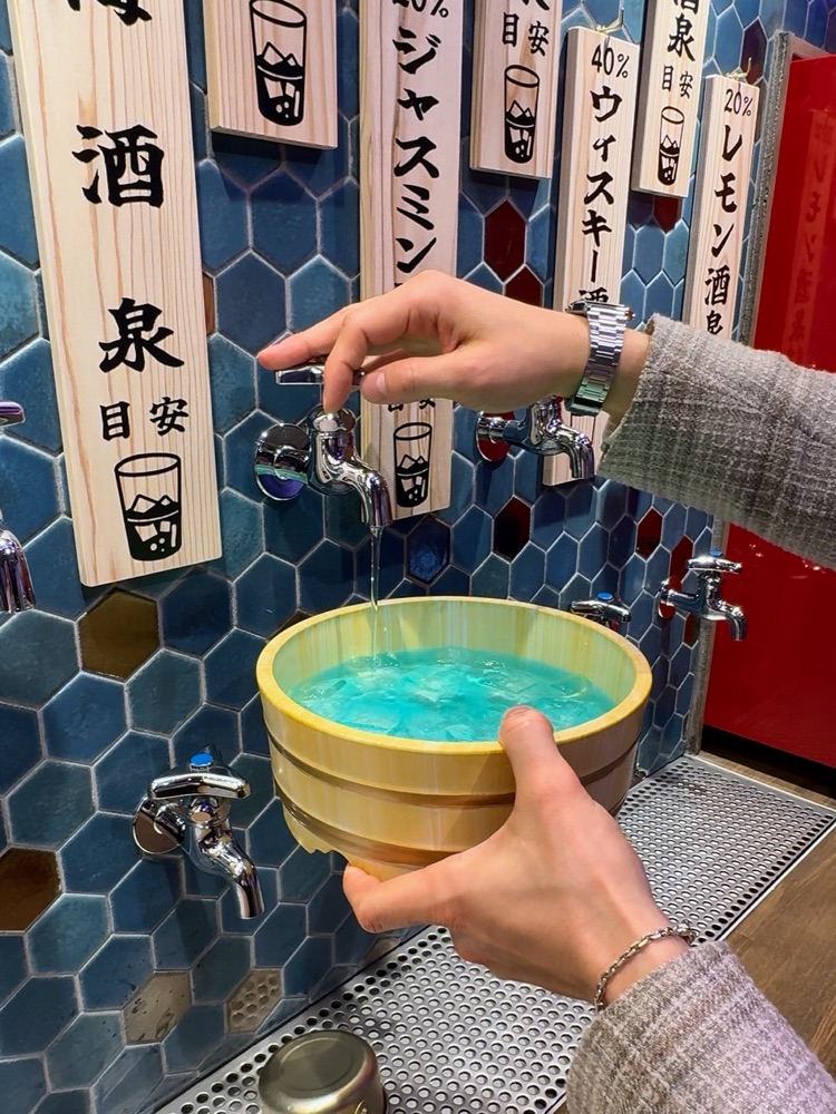 蛇口をひねるとお酒が出てくる1時間398円(税込438円)〜のセルフ式飲み放題が名物のエンタメ酒場です。