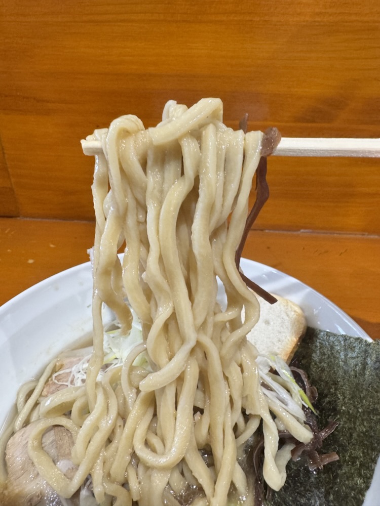 硬すぎずやわ過ぎず、程よい食感の極太麺。